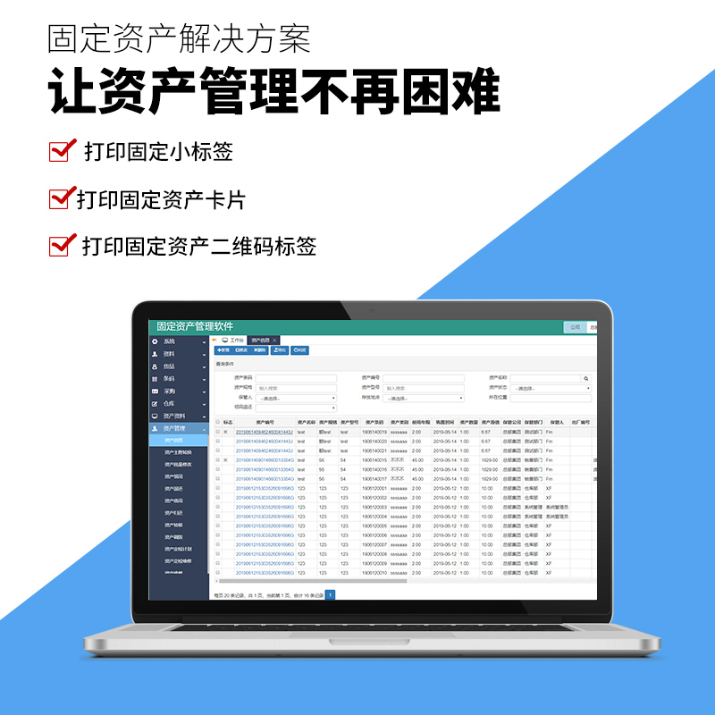 Giant Row Fixed Asset Management Software Equipment Management System Factory School Company Mobile Count Asset Liquidation Purchasing Loan Scrapped two-dimensional code card Multi-user unlimited number of items