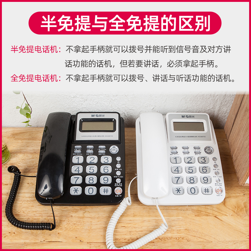 MG M&G AEQ96761 Wired Telephone Landline Landline Seated Office Home Battery-Free Business Caller ID Landline Black White Optional Wired Landline
