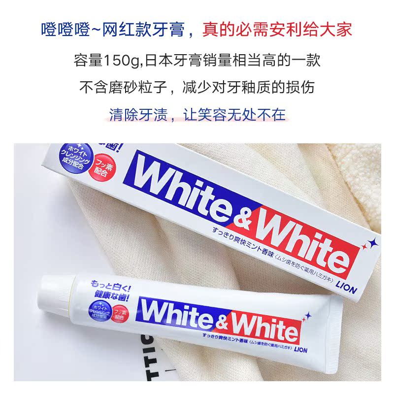 Japan's LION lion king white toothpaste tone cleaning whitening anti-moth mint flavor remove tartar 150g*2