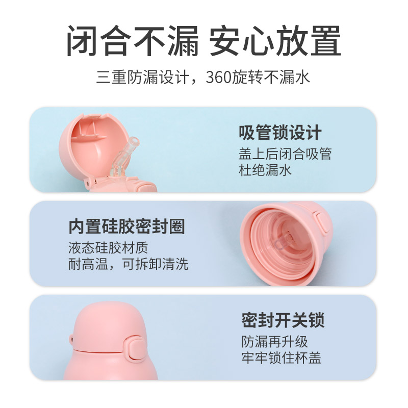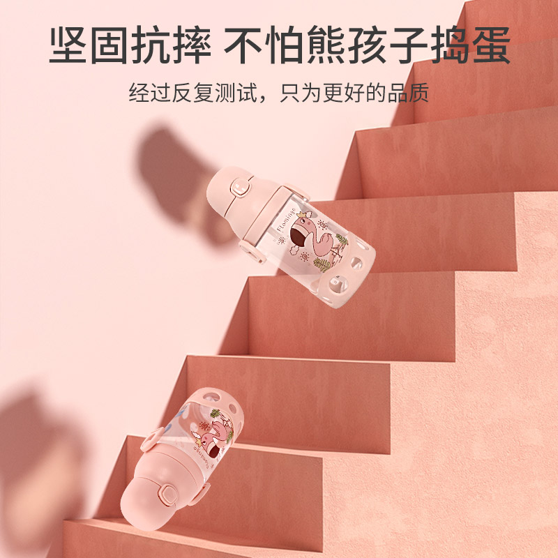 Children's water cups for school special straw cups primary school infants and young children leak-proof straps drinking water cups straw kettle summer