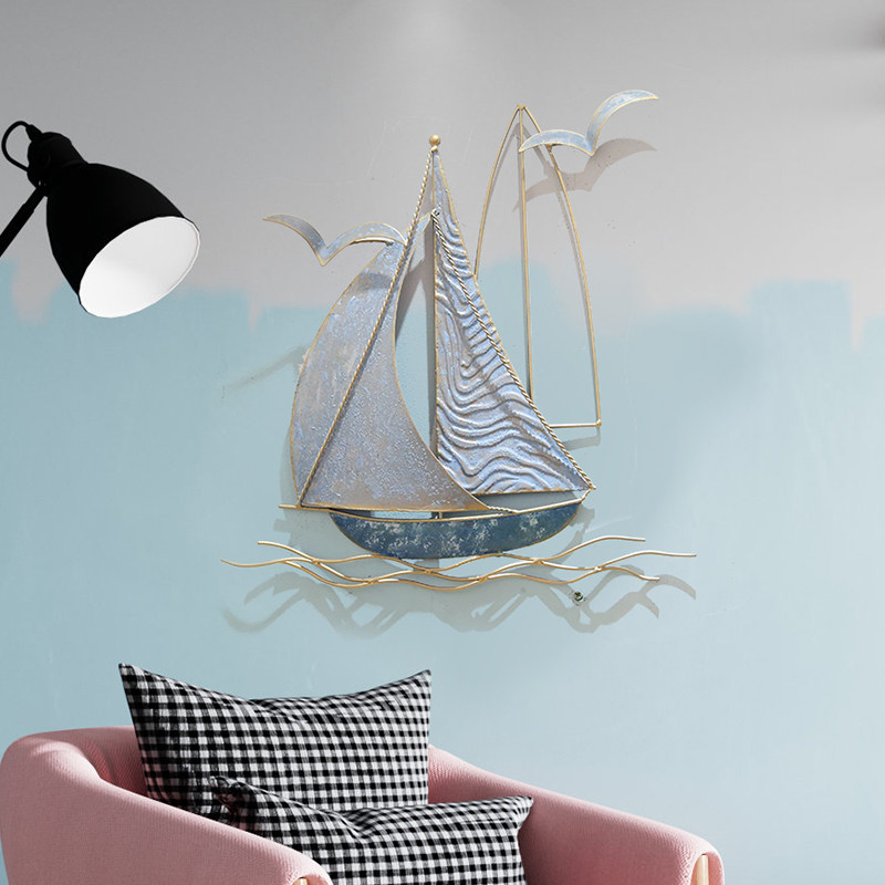 Mediterranean style creative wrought iron wall decoration living room sofa background wall surface decoration smooth sailing sailing pendant