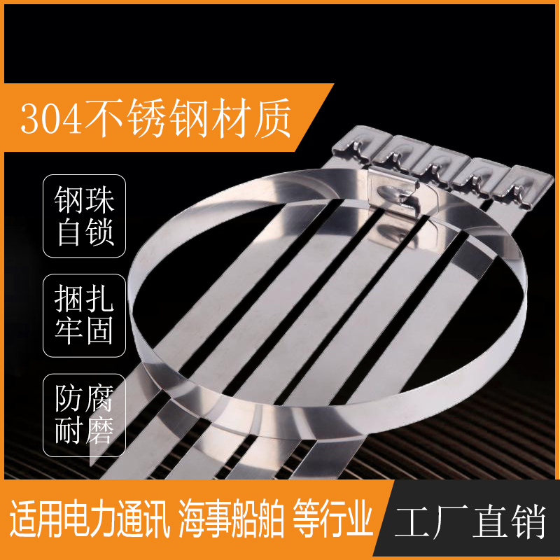 304 self-locking stainless steel cable tie 12MM wide metal white steel strapping wire marine traffic tag outdoor