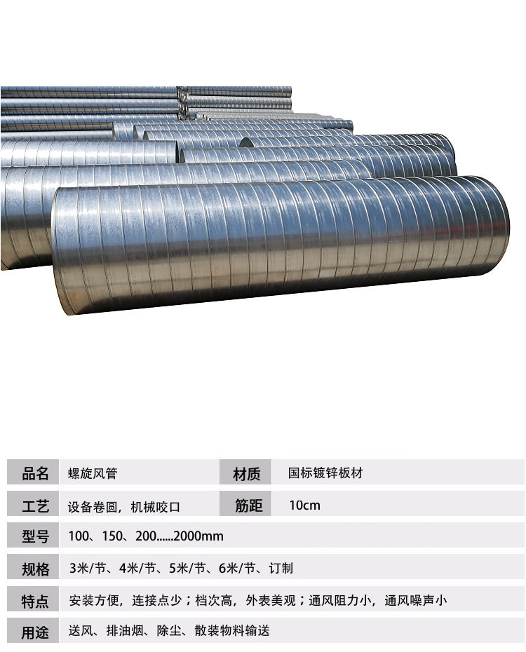 Stainless steel welding duct white iron sheet processing dust removal fire smoke exhaust galvanized spiral duct ventilation duct
