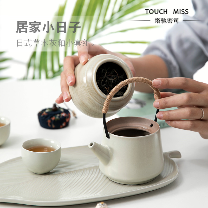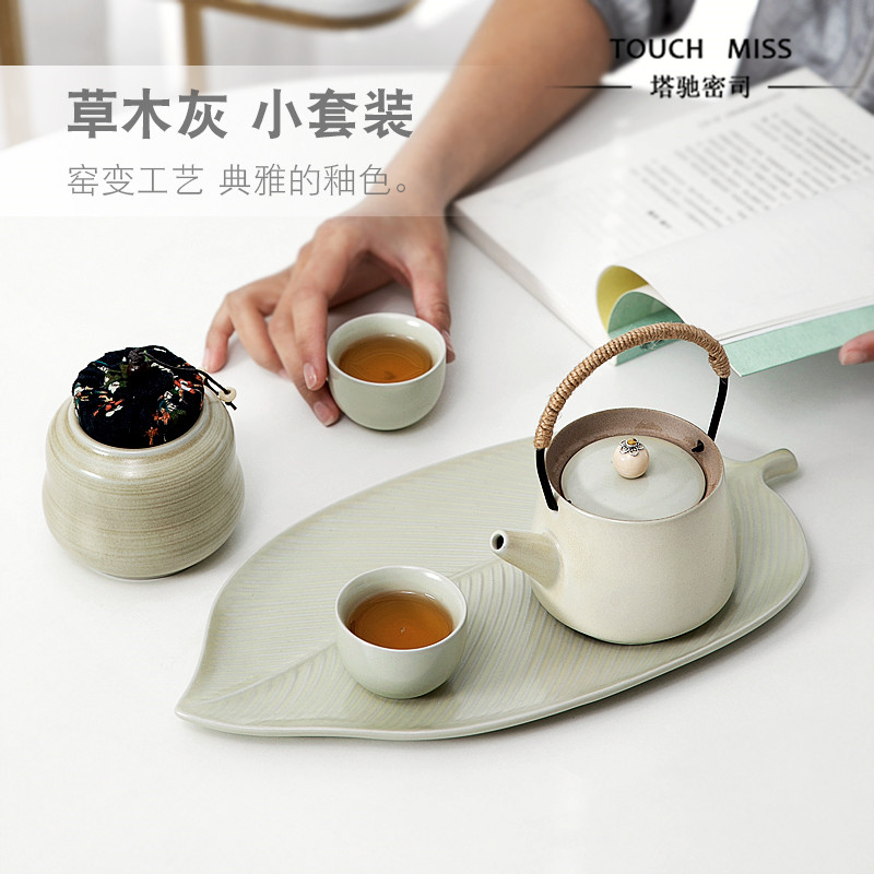 Touch Miss Japanese grass grass gray ceramic tea with a leaf boat combination package with a complete ceramic tea plate