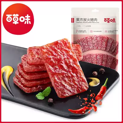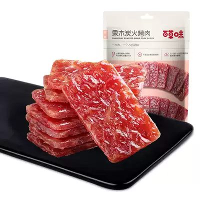 (Baicao flavor-fruit wood charcoal barbecue 70g)Preserved pork snacks Dried meat Leisure snacks Net celebrity specialty cooked food