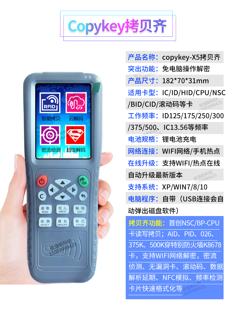 copykey-X5 copy Qi IDIC card access control elevator read and write recontroller full encryption and decryption rolling code copy