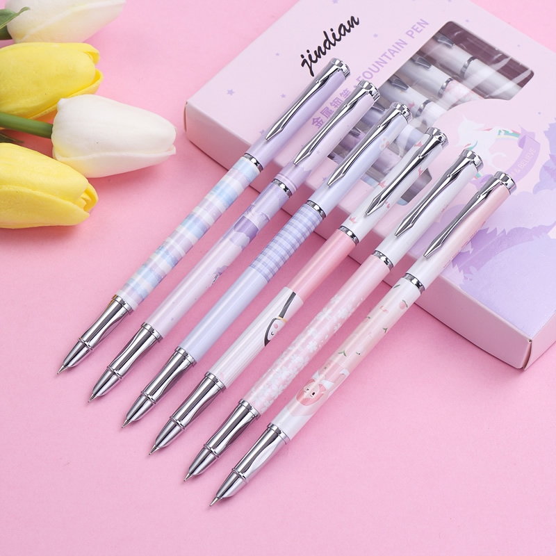 Akway primary school student pen Student-specific third grade dark tip orthographic pen can suck ink 2 6 ink sac dual-use special fine beginner male and female children's metal pen set