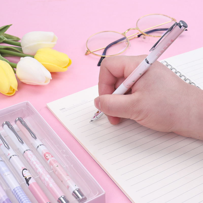 2 pens (boys) 2 pens(girls) 2 pens(boys) 50 blue ink bags 2 pens(boys) 50 blue and black ink bags 2 pens(boys