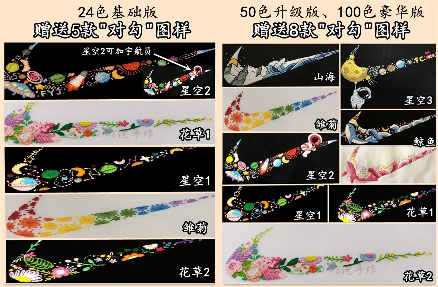 DIY embroidery material bag 50 color DIY embroidered material bag 50 color pure cotton T-shirt 1 piece DIY embroidered material bag 50 color pure cotton T-shirt 2 pieces DIY embroidered material bag 50 color long