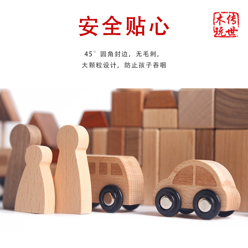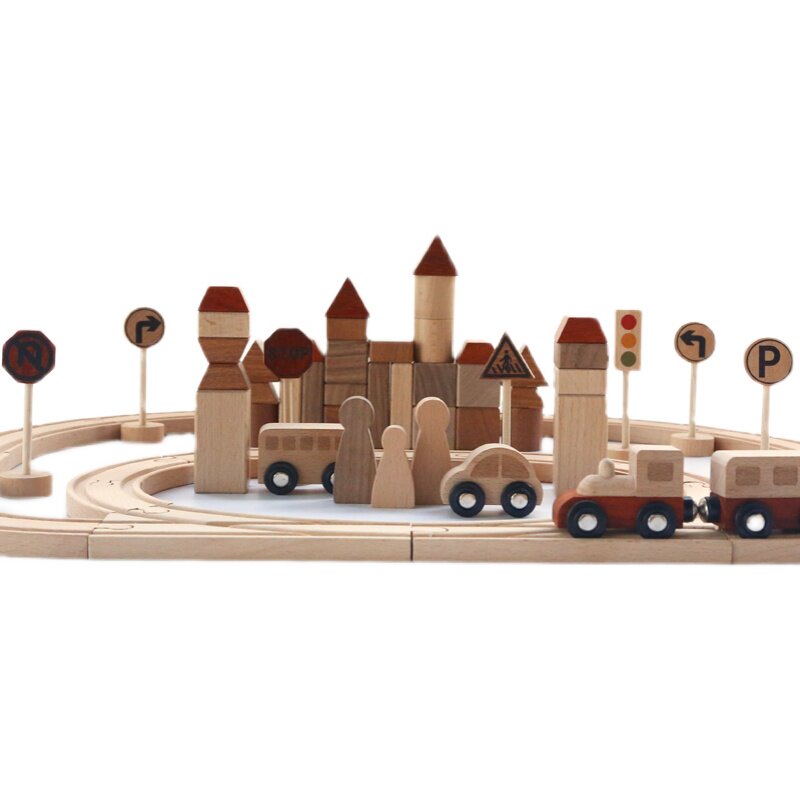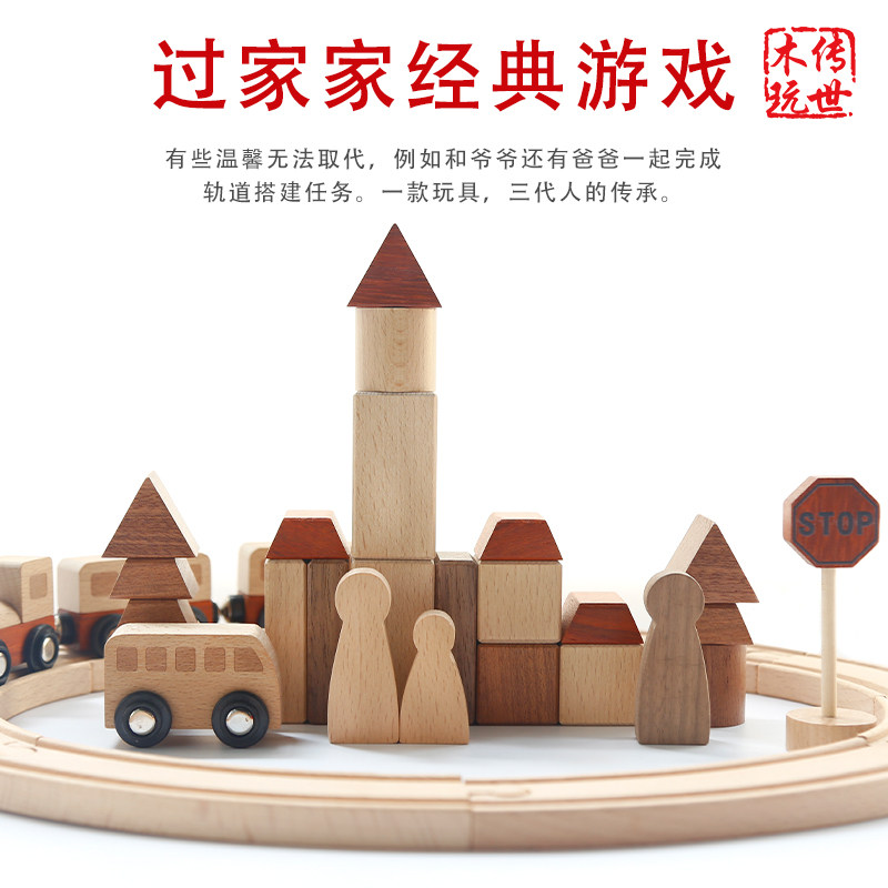 Wooden pitch track small train toy children's Young Yi Jing Building block high-end log without paint boy gift