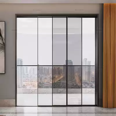 Very narrow side three-linkage glass sliding door partition Kitchen balcony living room aluminum alloy hanging wheel sliding door Changhong folding