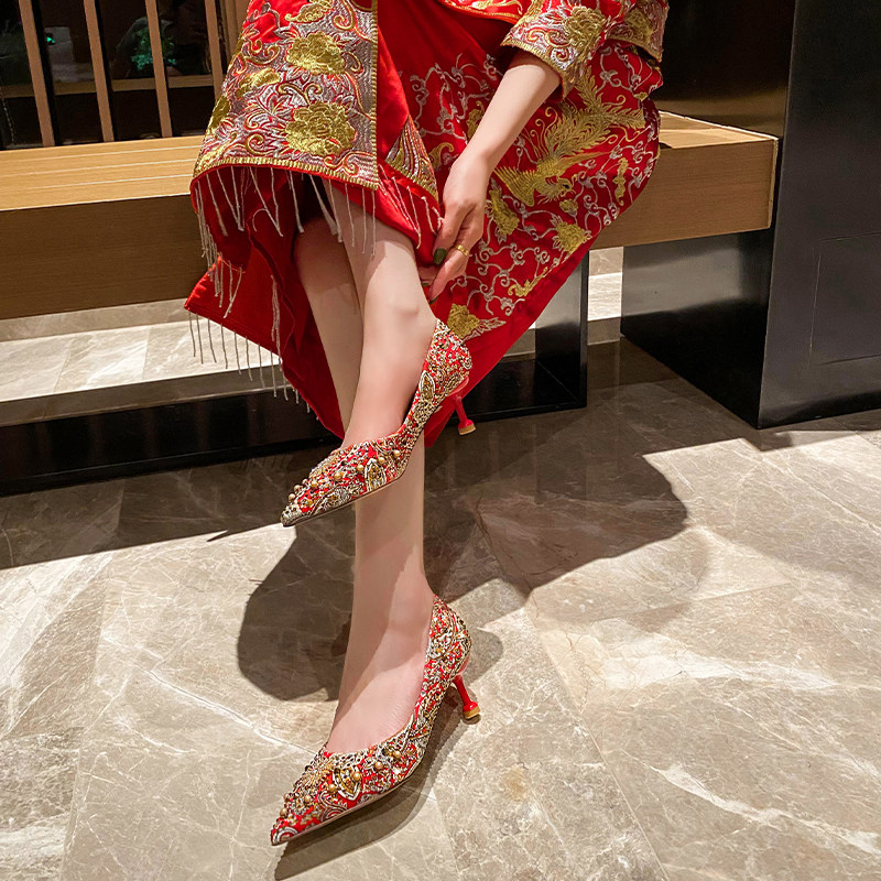 Xiuhe clothing wedding shoes 2022 new red high heels wedding shoes red Xiuhe wedding dress two wear bridal shoes Chinese style