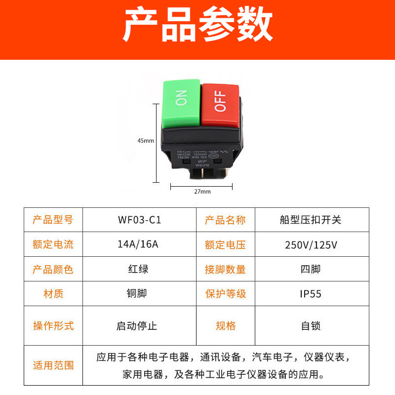 Ship type pressure buckle switch WF03-C1 start stop control button double button red and green 4 feet 1 open 1 closed