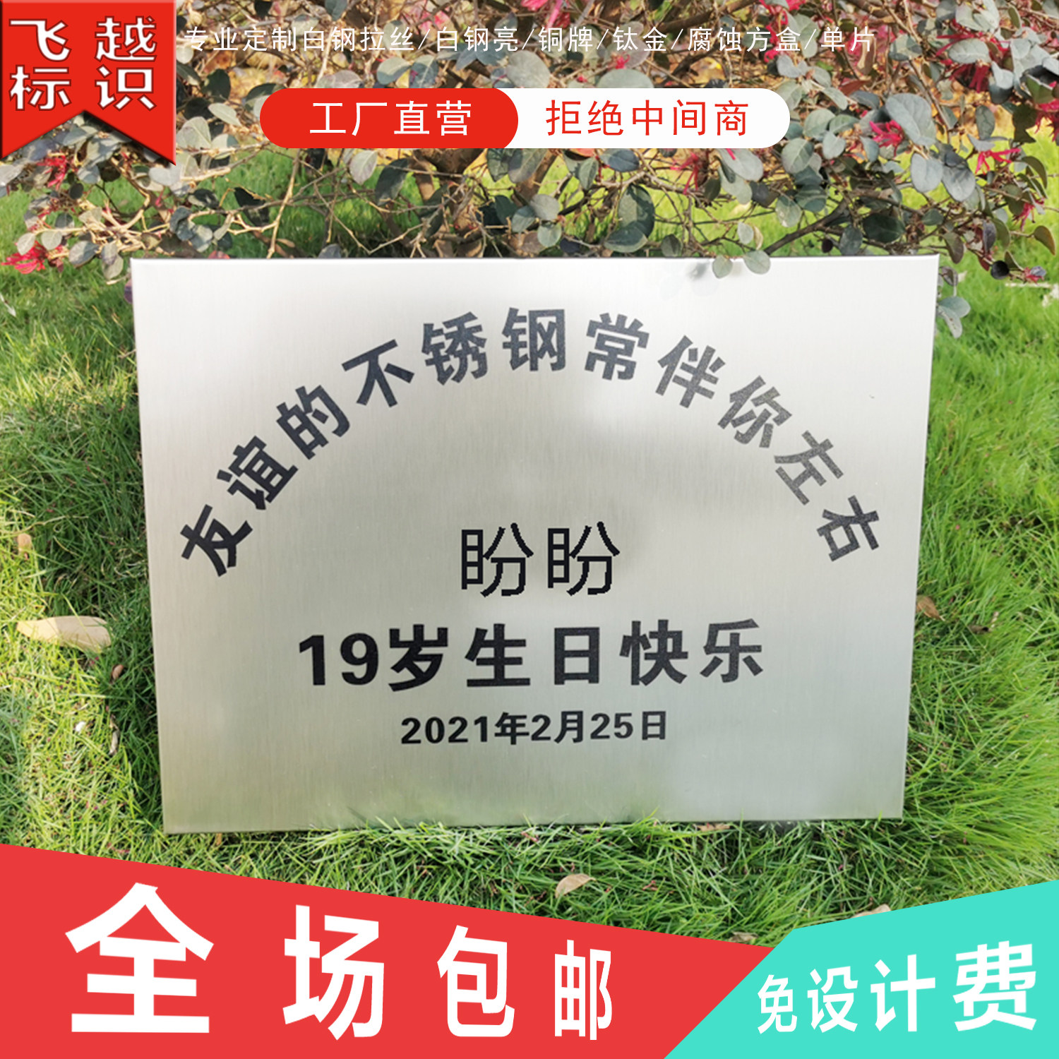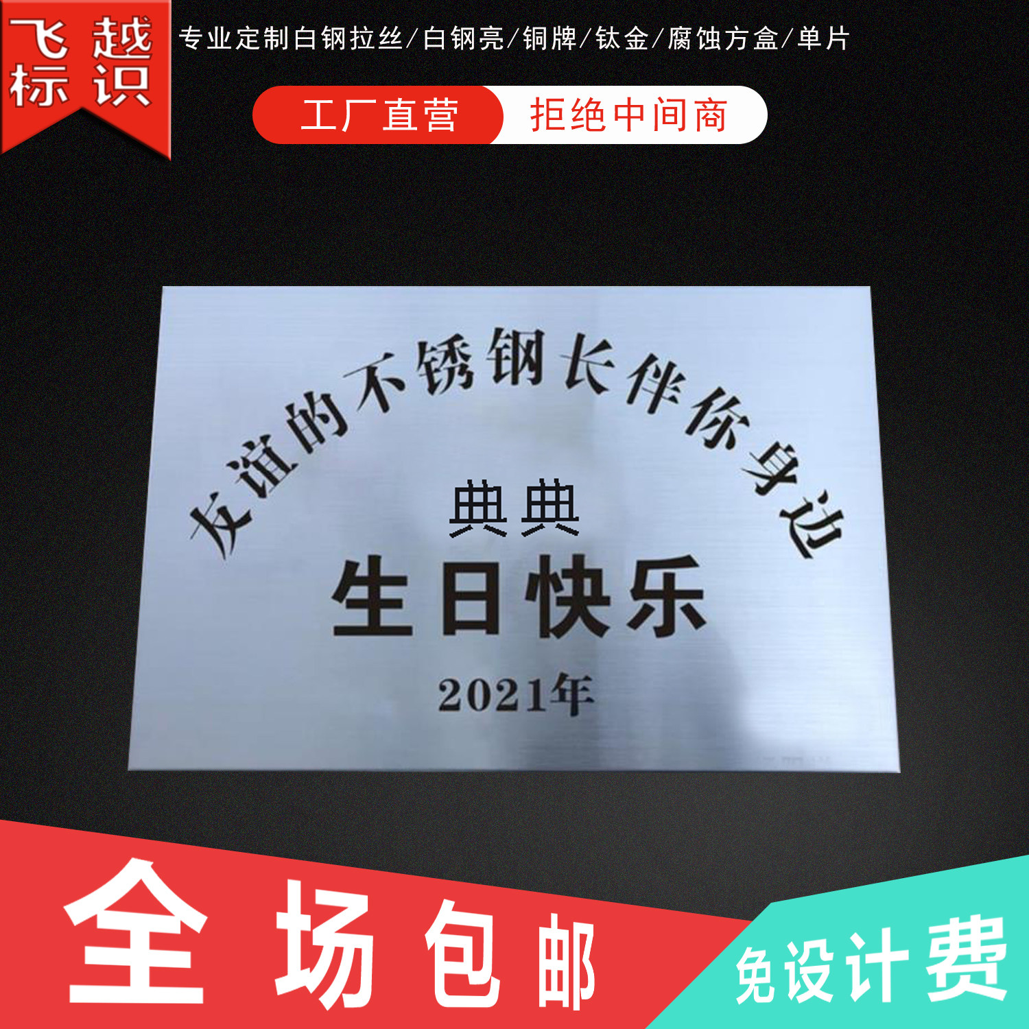 Douyin net red gift friendship stainless steel plaque birthday gift billboard bronze birthday card custom-made