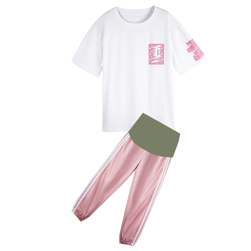 Pregnancy Maternity Dress Summer Suit Fashion Models New Casual Sports Net Infrared Out Summer Short Sleeve Blouses Women Summer Two Sets