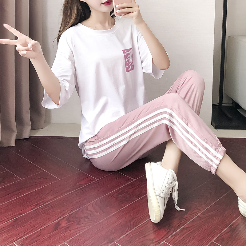 White T plus pink pants for a long and long.