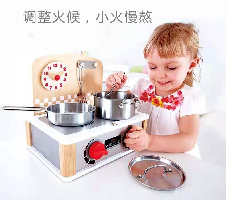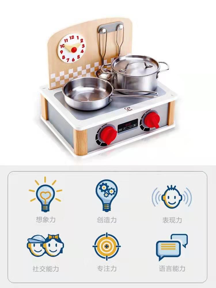 Hape double-sided mini simulation wooden kitchen set Children Baby home wine male and girl stove cooking toys