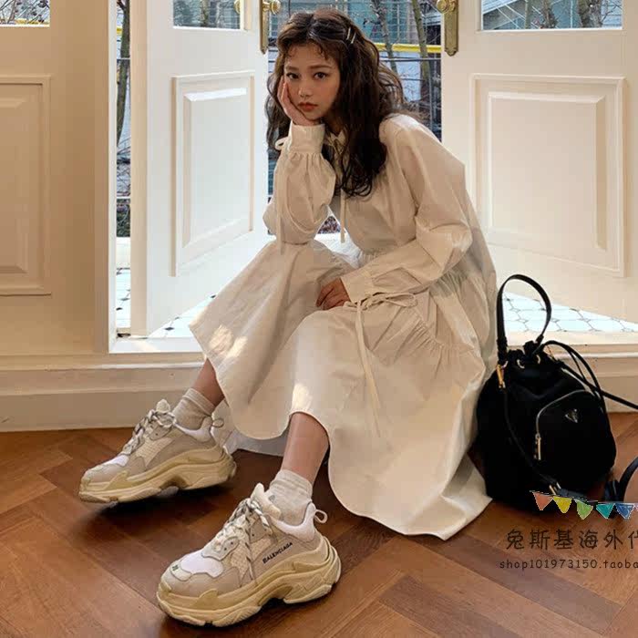 Japan SLY Spring Summer New Korean version shirt retro loose POLO collar for a long version of the women's dress