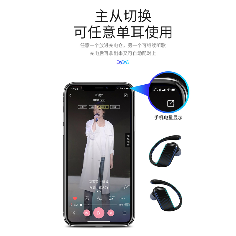 Wireless Bluetooth headphone sport running 2022 new ear-hanging double-ear-in-ear noise reduction great power extra-long standby listening to song sequel applies oppo Apple Huawei vivo Android phone