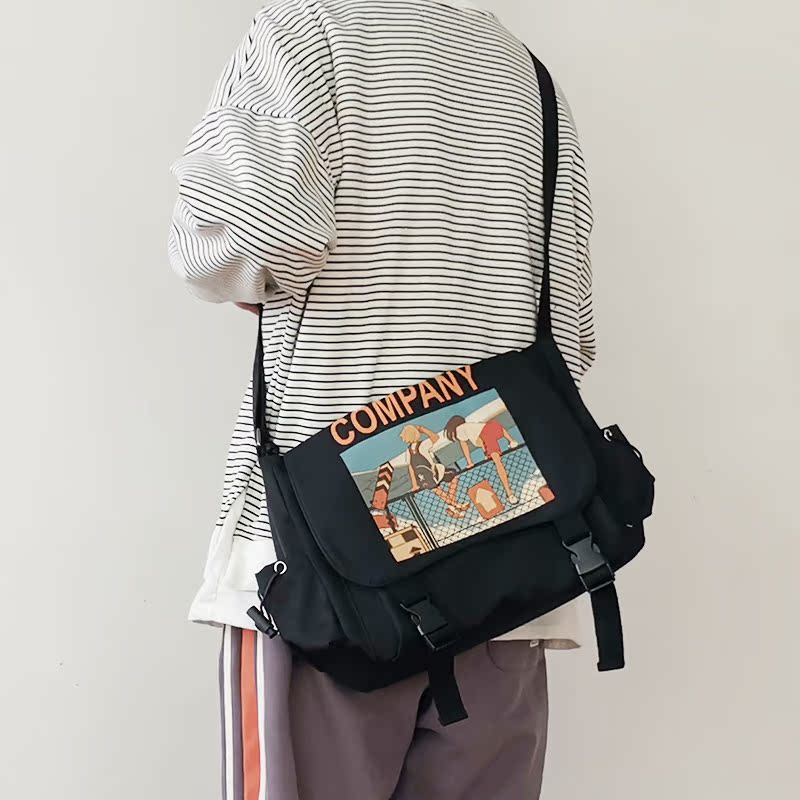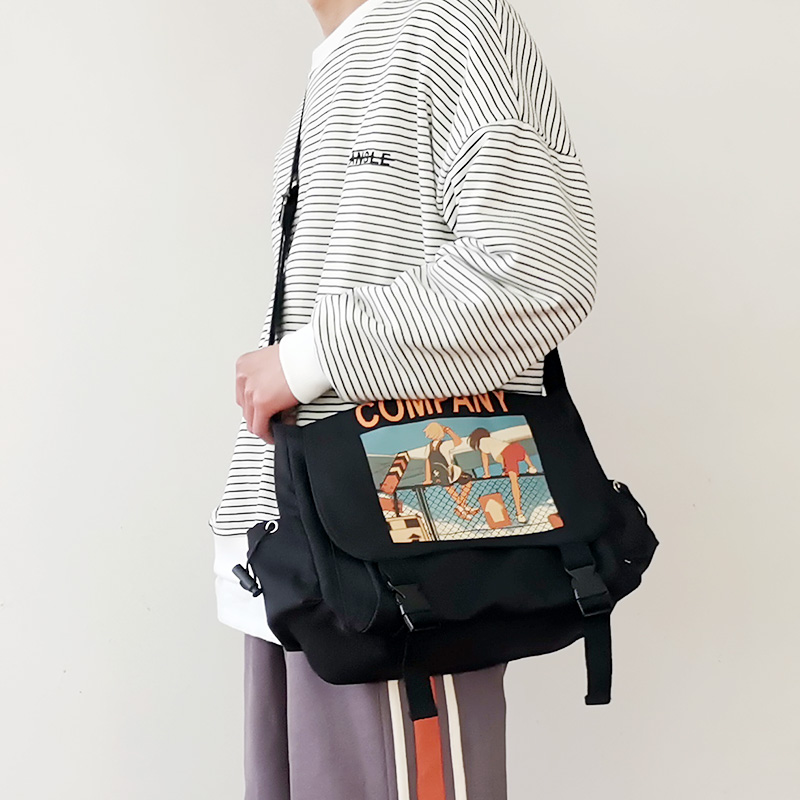 Special Clearance Cartoon Printed Shoulder Bag Hong Kong Style Harajuku Junior High School Students Flip Bag Men and Women Couples