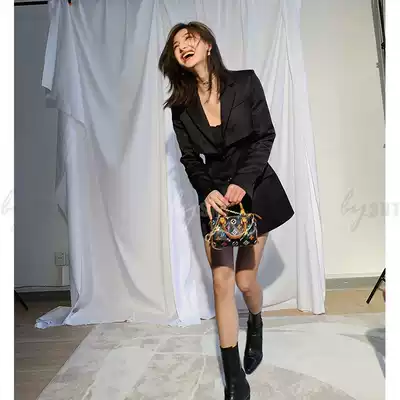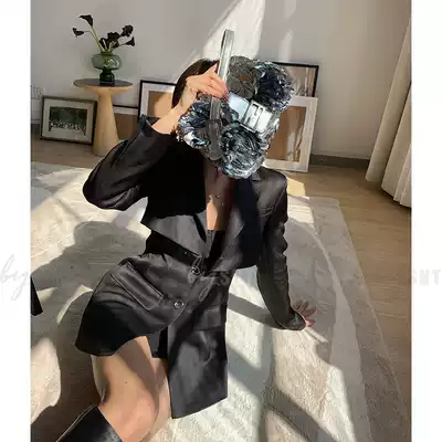SNT Ace I'm a big brother black fake waist seal satin waist slim casual suit jacket woman