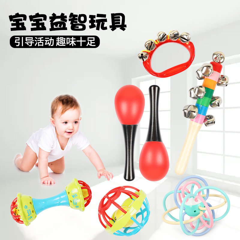 Red sand hammer plecking wave drummer hand rattle baby gripping training toy can nibble the puzzle newborn baby 3 months 0