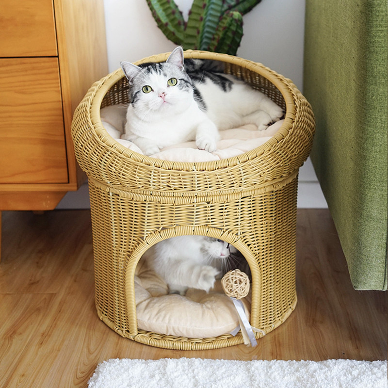 One House Two Meow Three Meals All Season Manual Rattan Chowl cat Cat Climbing Shelf Cat Villa Fresh And Breathable Pp Imitation Vine