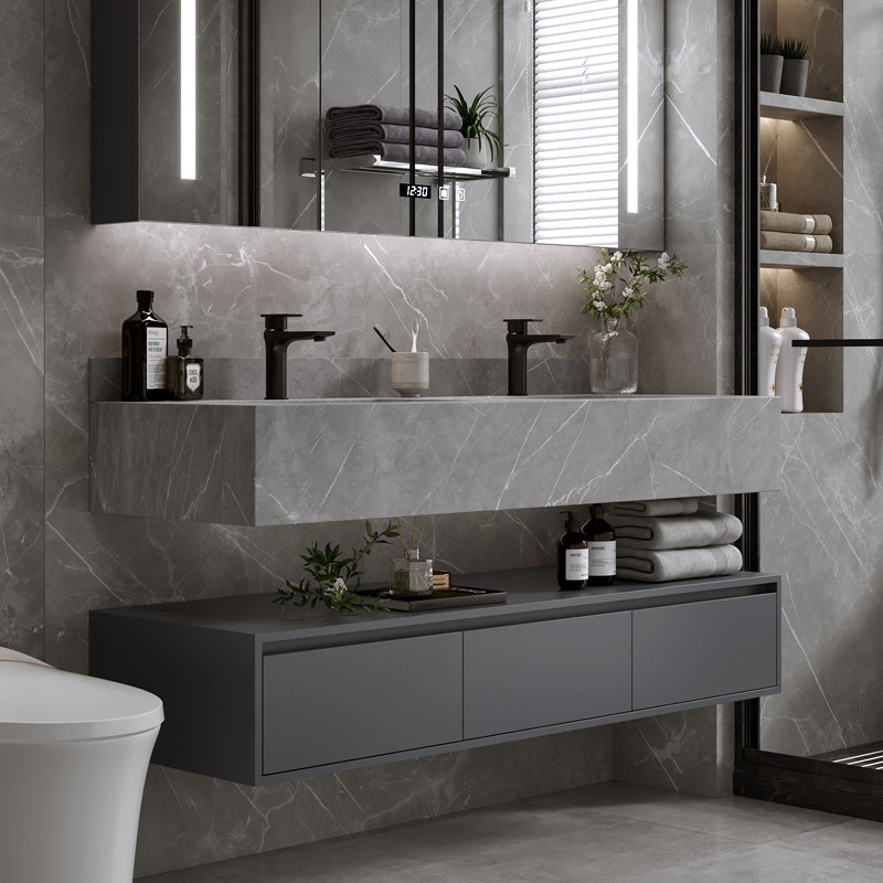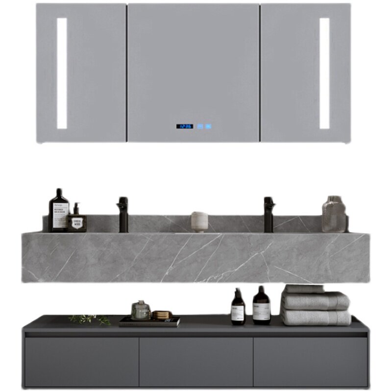 Double trough washbasin rock plate integrated modern minimalist light and luxurious wind bath cabinet Composition wash washsink wash basin Wash Terrace Basin Makeup room