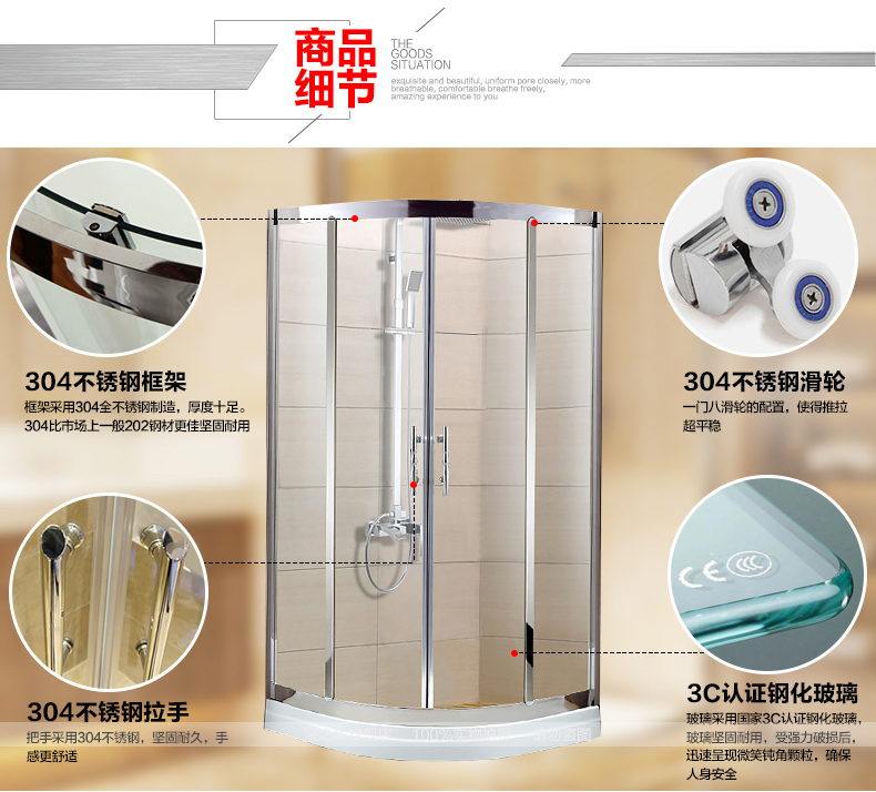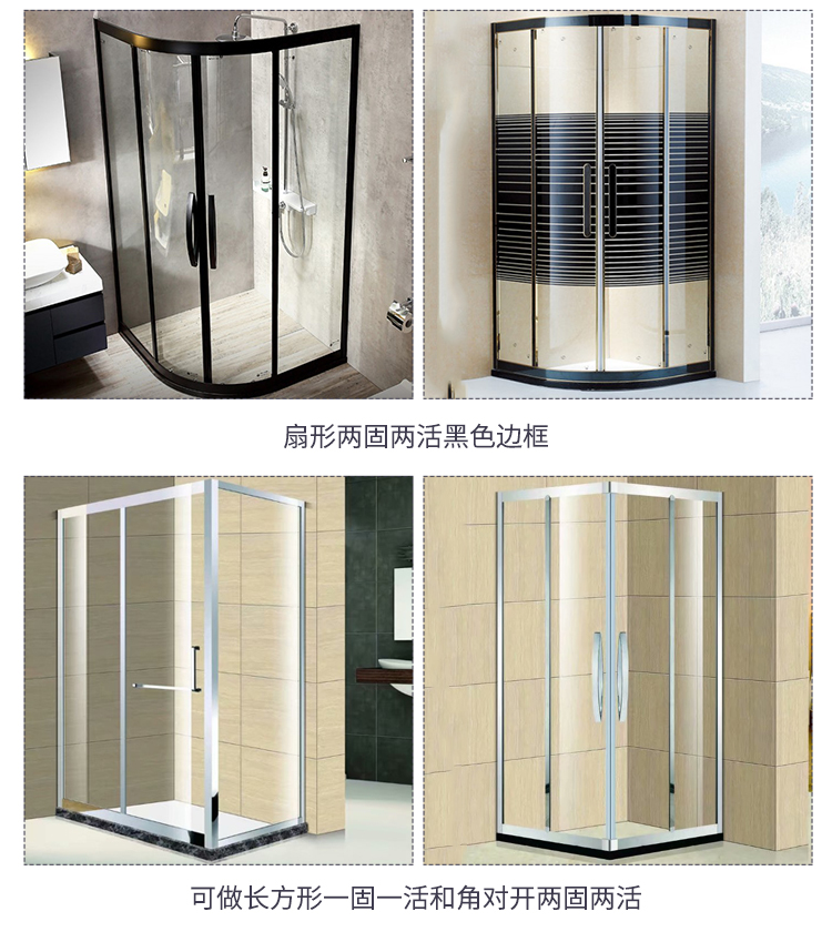 Customized 304 stainless steel shower room glass arc-shaped black bathroom dry and wet separation bath partition