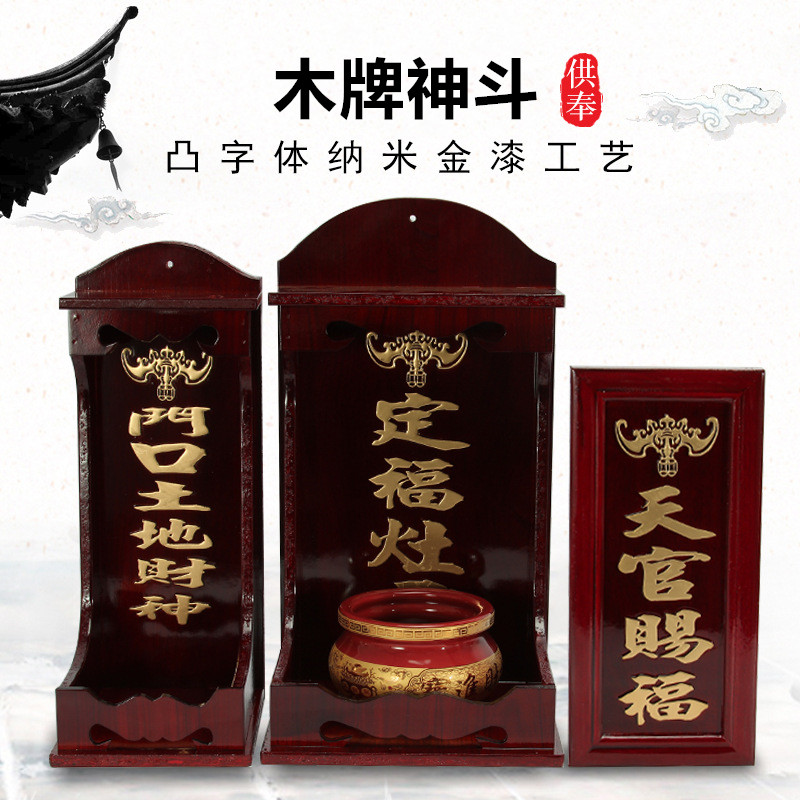 Solid wood Tianguan Blessed God's Throne Entrance Land Treasure of the Gods Gods Dine Foo Kitchen God can put incense stove Shenzao Wooden Tablet Position Pendulum