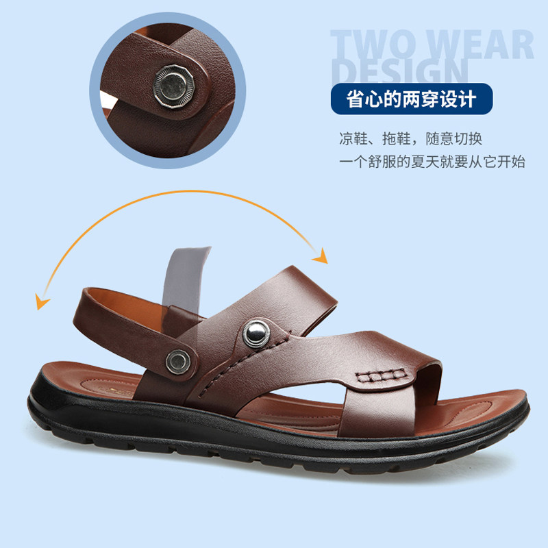 Men's sandals leather 2022 summer new trendy casual leather sandals non-slip men's slippers beach shoes for external wear