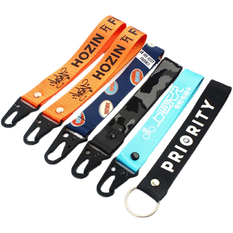 Name strip key chain custom ribbon color silk screen ribbon carabiner buckle personalized embroidery pendant lanyard Korean version