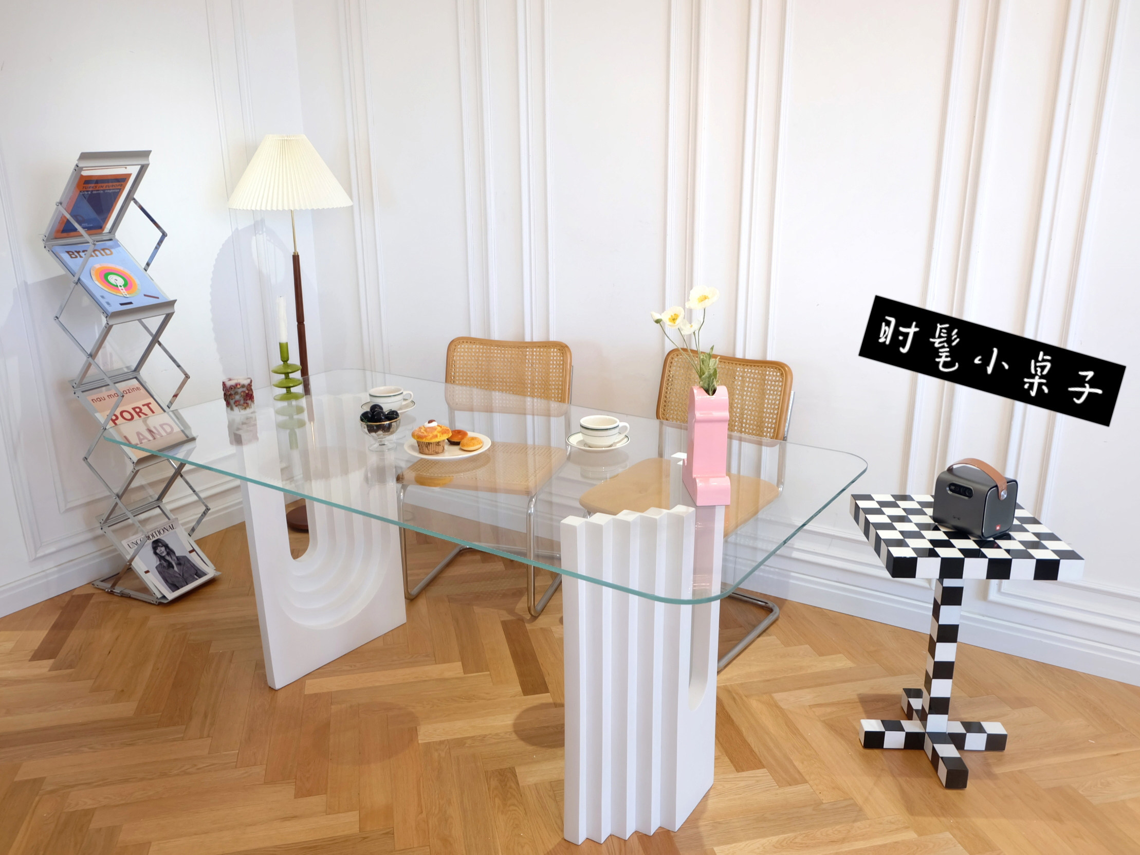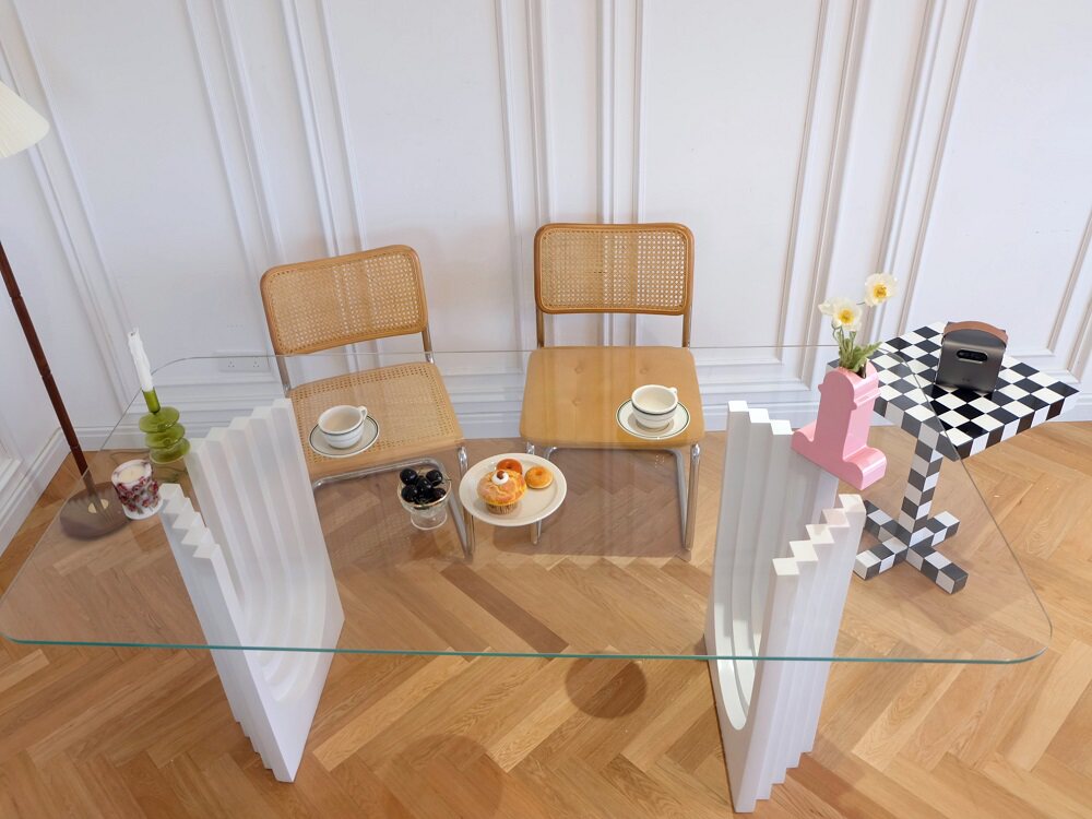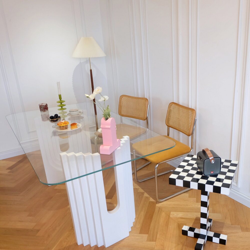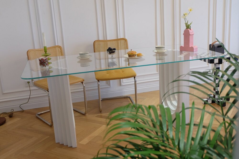 2021 New Internet red lawn number light luxury table household high end glass dining table 6 people 8 people middle old desk