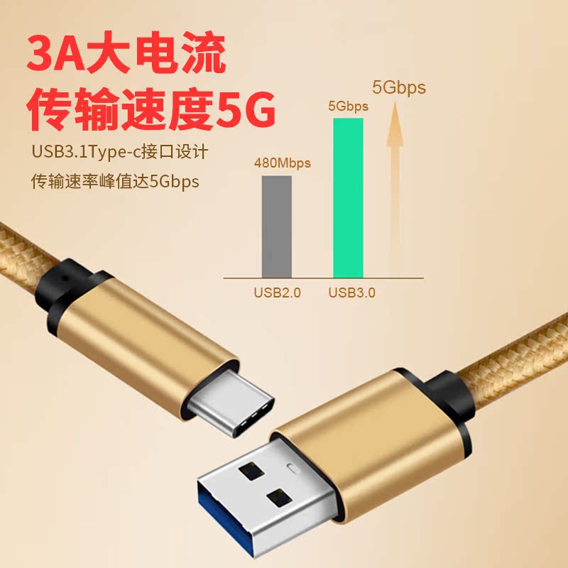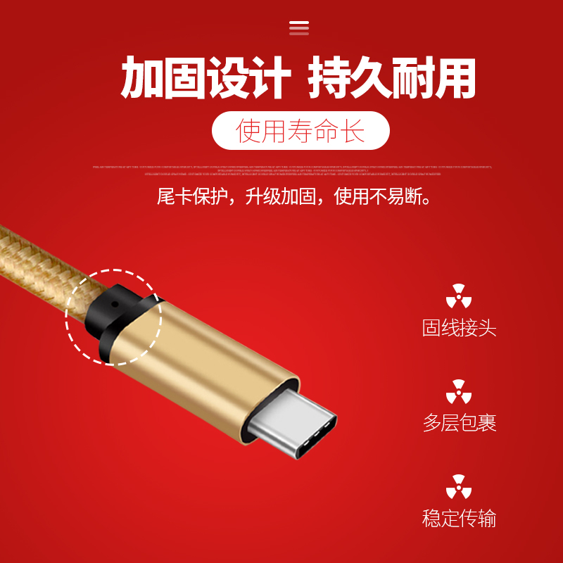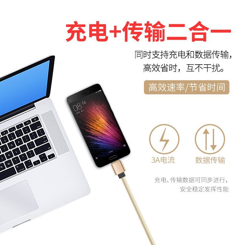 Mobile phone charging line multifunction 5V3A Quick charge Type-c spigot nylon wire durable speed charging line 1m long