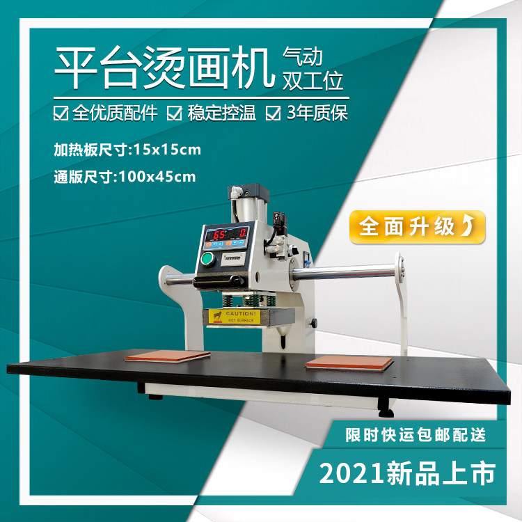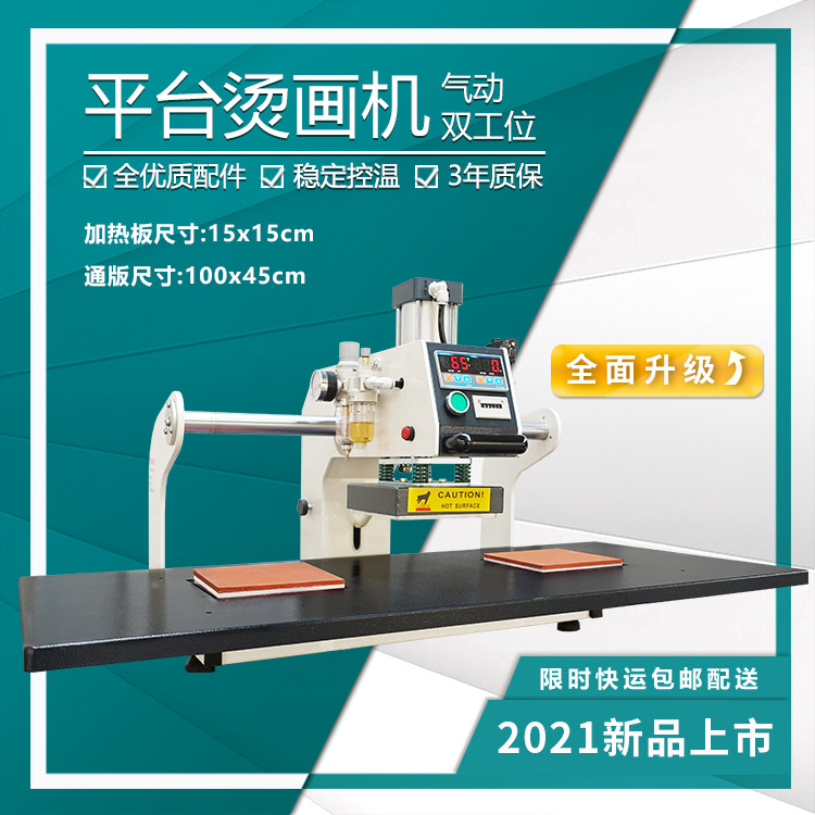 2021 New Garment Platform Slip Double Station 1515cm Hot Stamping Drawing Machine Thermal Transfer Hot Stamping Water Washing Machine
