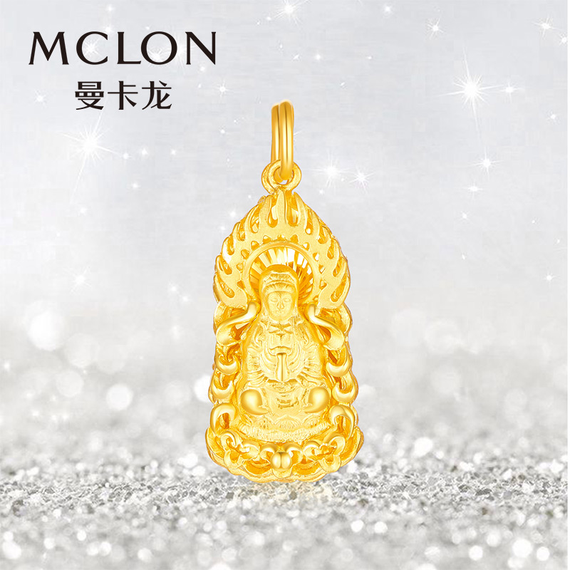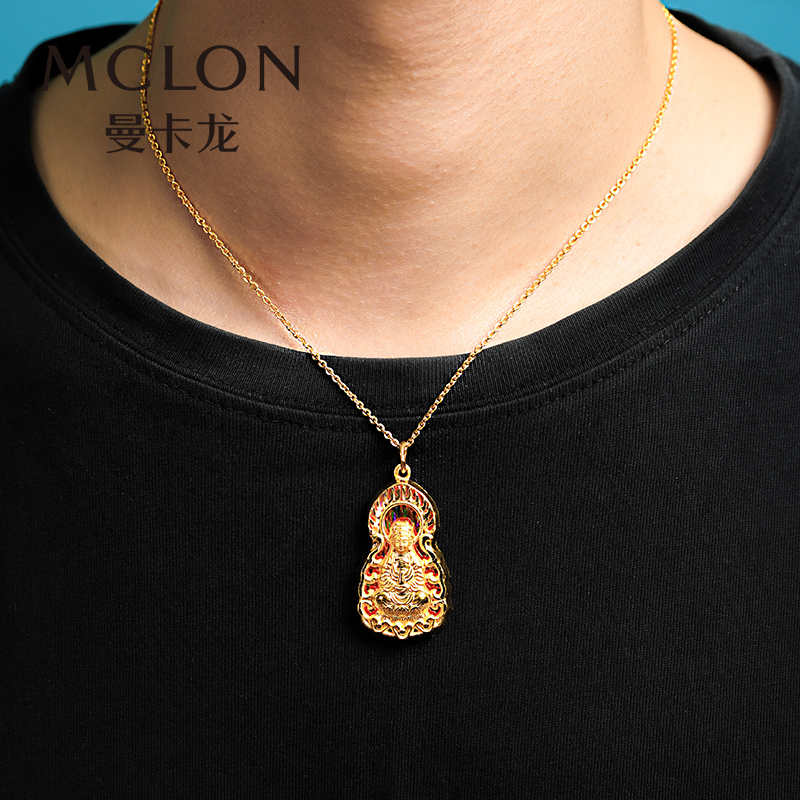 Mancaron gold pendant 999 foot gold flame Guanyin pure gold color Necklace Men and women Pendant Denominated Gifts