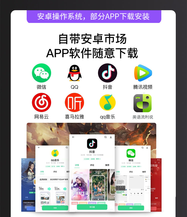 Picture browsing Recording function External playback function Intelligent operating system Support WIFI Bluetooth connection