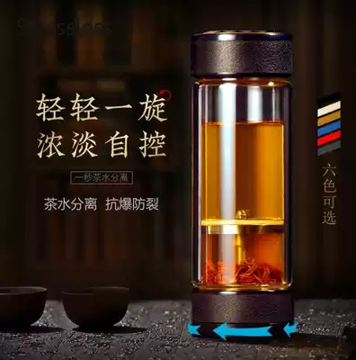 High-grade tea water separation filter Cup double glass cup tea cup portable men heat insulation transparent water Cup