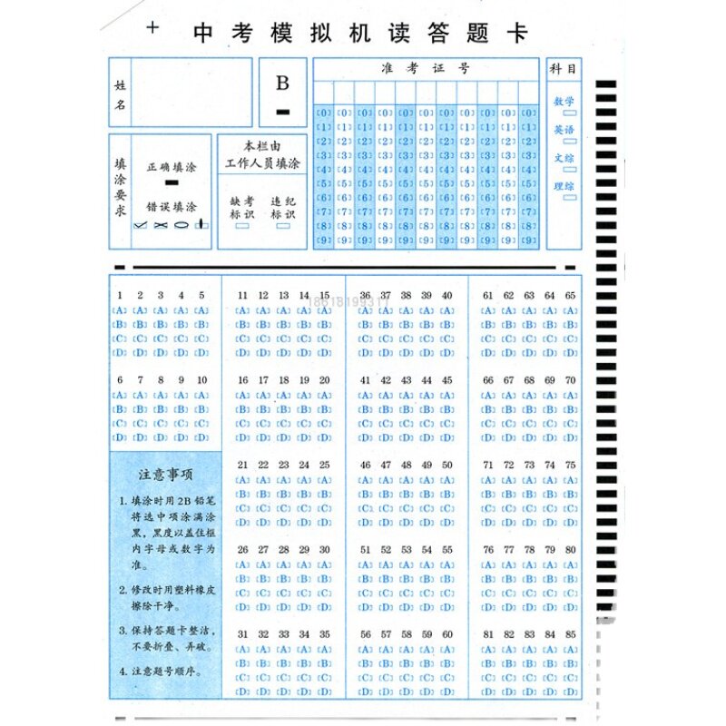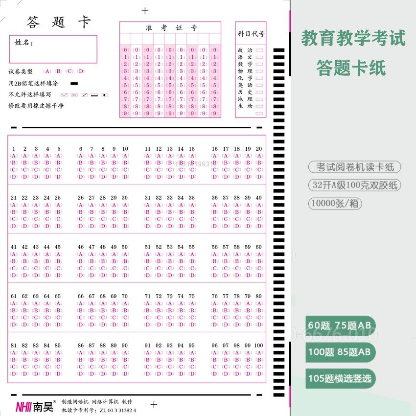 Student entrance examination answer card school reading card 105 questions 50 questions 85 questions objective questions fill card