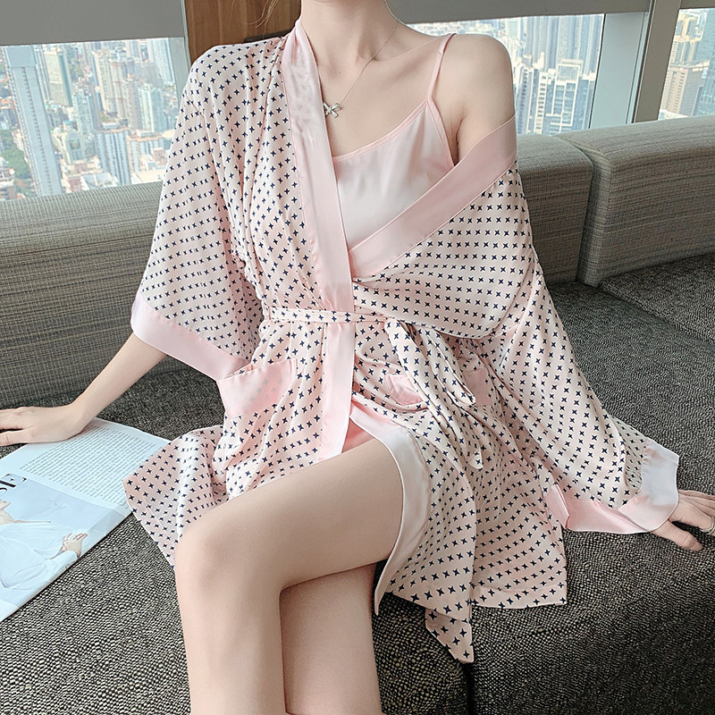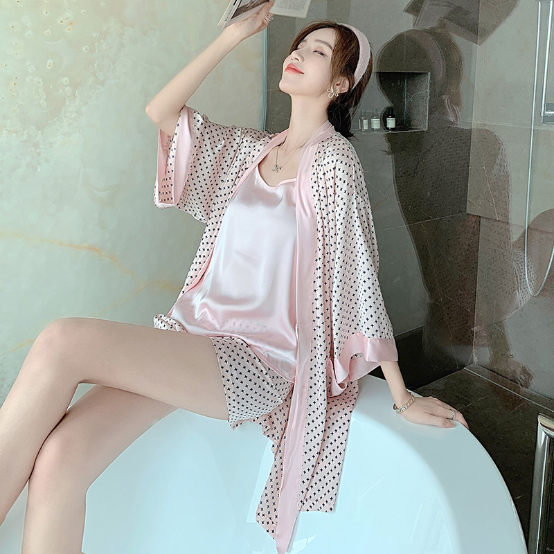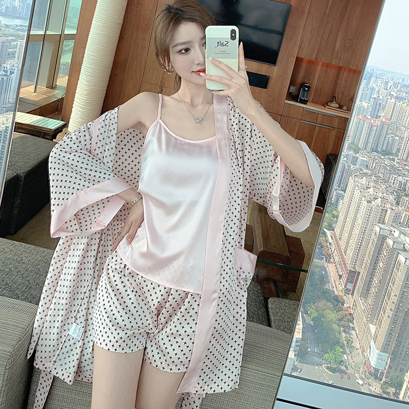 2022 Spring Summer Season New Sleepwear Women Feel Harness Shorts Shorts Sleeping Robes Three Sets Of Ice Silk Satin Home Clothes