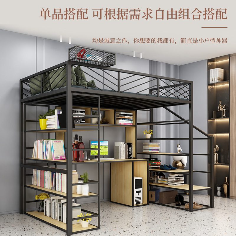 2021 loft bed bed under table space saving loft bed modern minimalist double single upper floor small apartment bunk bed