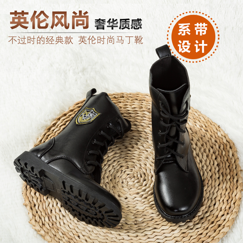 Children's special forces Martin boots boys and girls camouflage combat military training lace up Martin boots black