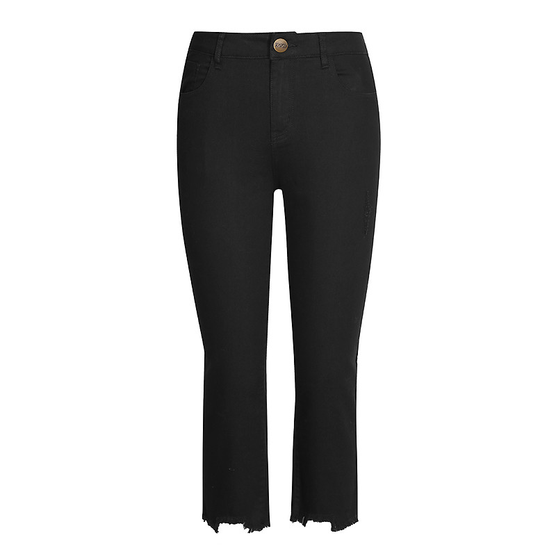 MsShe large size women's clothing 2021 new summer fat sister burr foot mouth irregular straight seven-point jeans