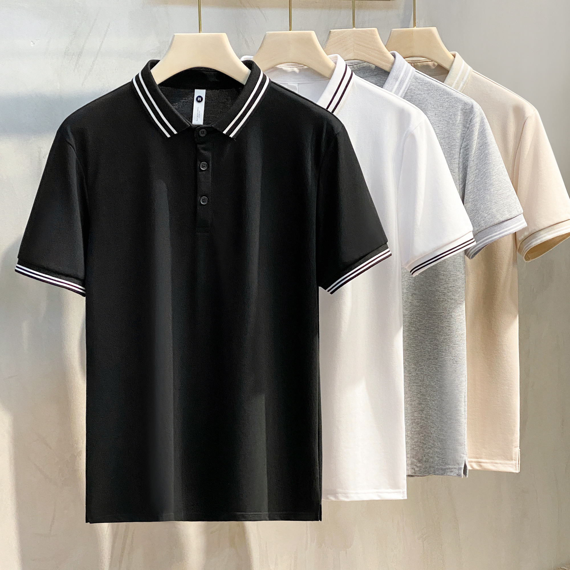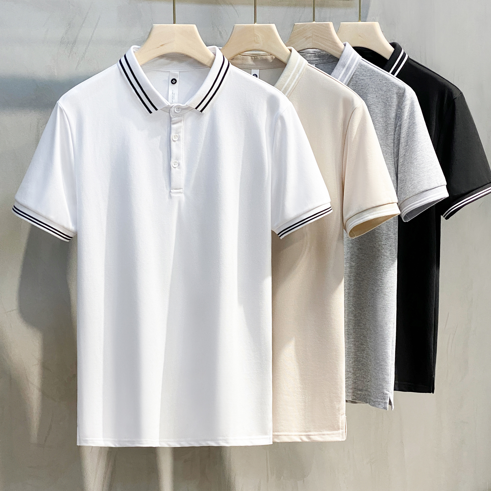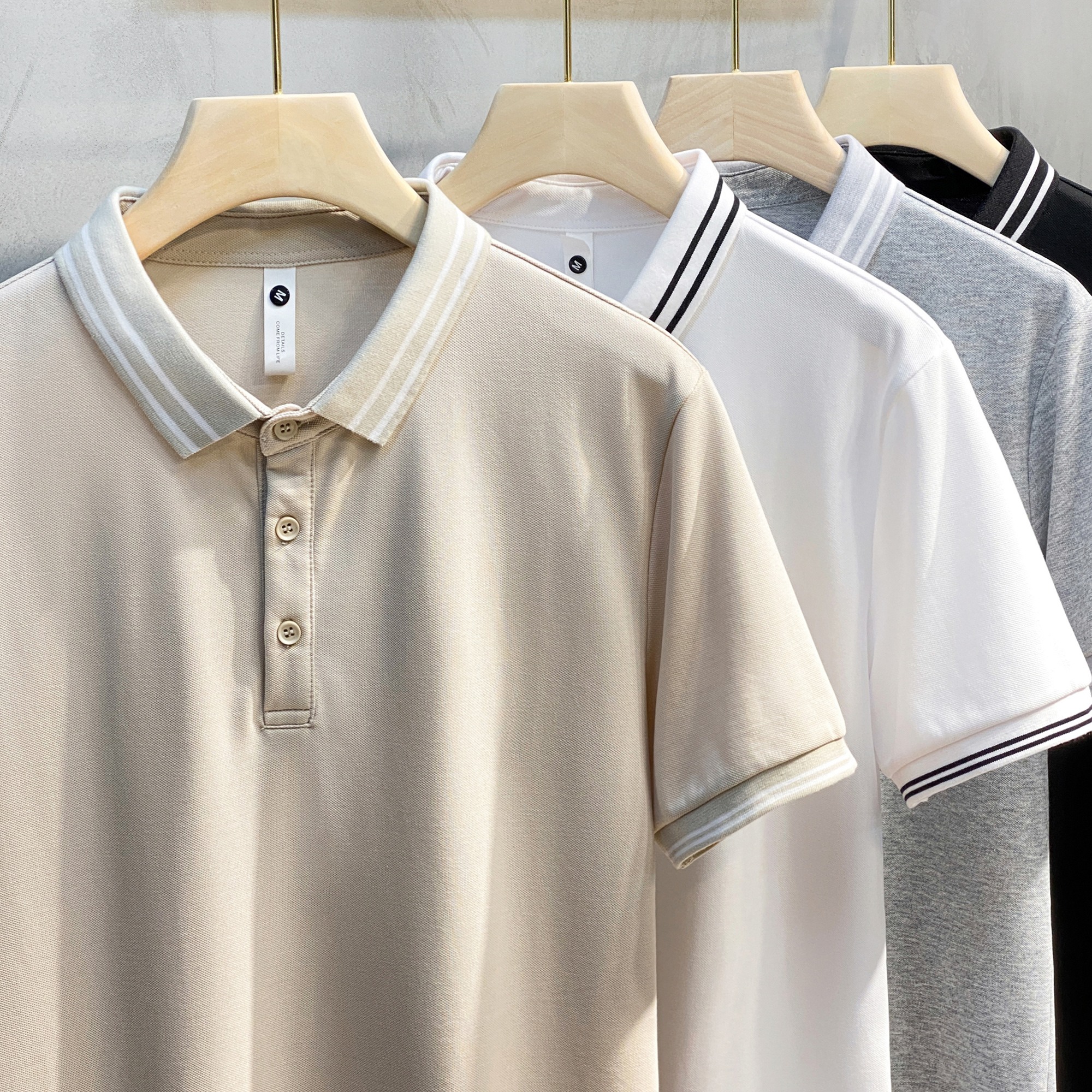 British style striped men's summer mercerized cotton trend polo shirt lapel Korean version casual youth short-sleeved T-shirt men