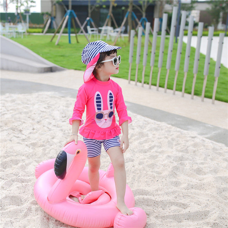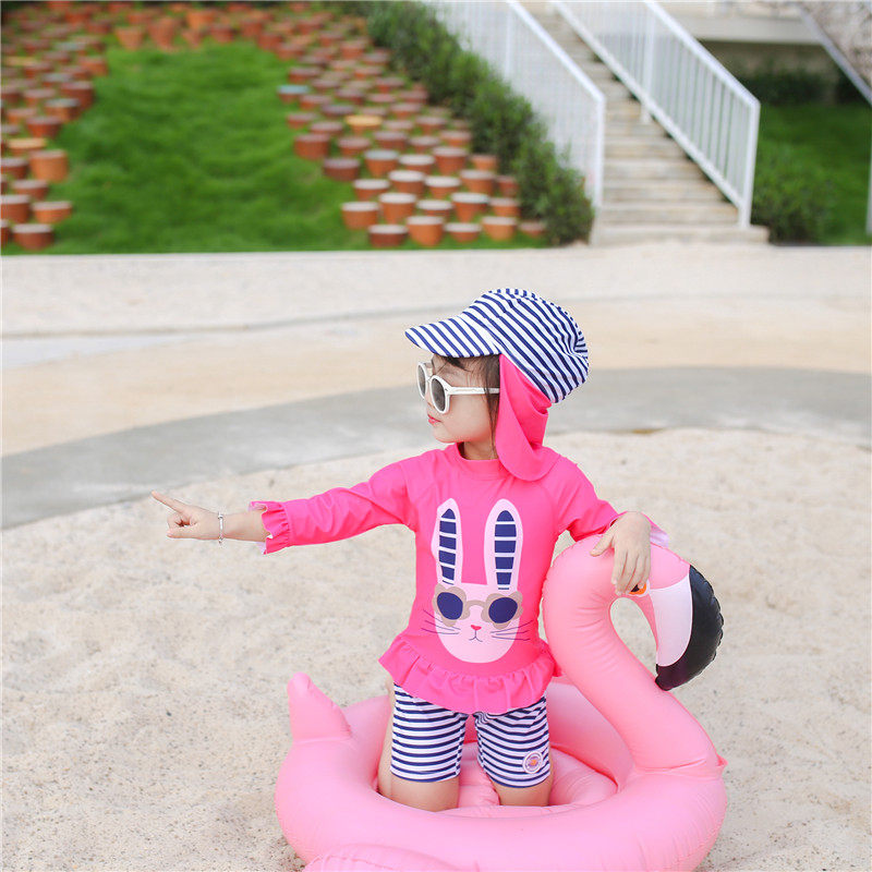 Children Swimsuit Girl Pink even body Little Rabbit CUHK Warm Sun Protection Against UV Surf Suit Suit