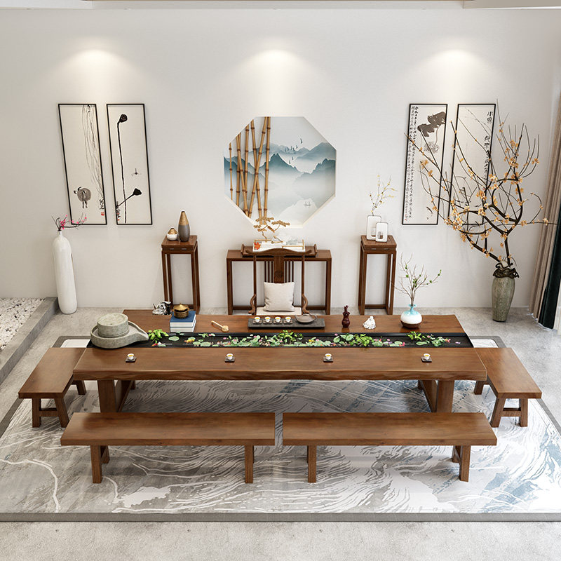 New Chinese classical pastoral solid wood circulating water tea table and chair combination Kung Fu tea table coffee table leisure fish raising and reception