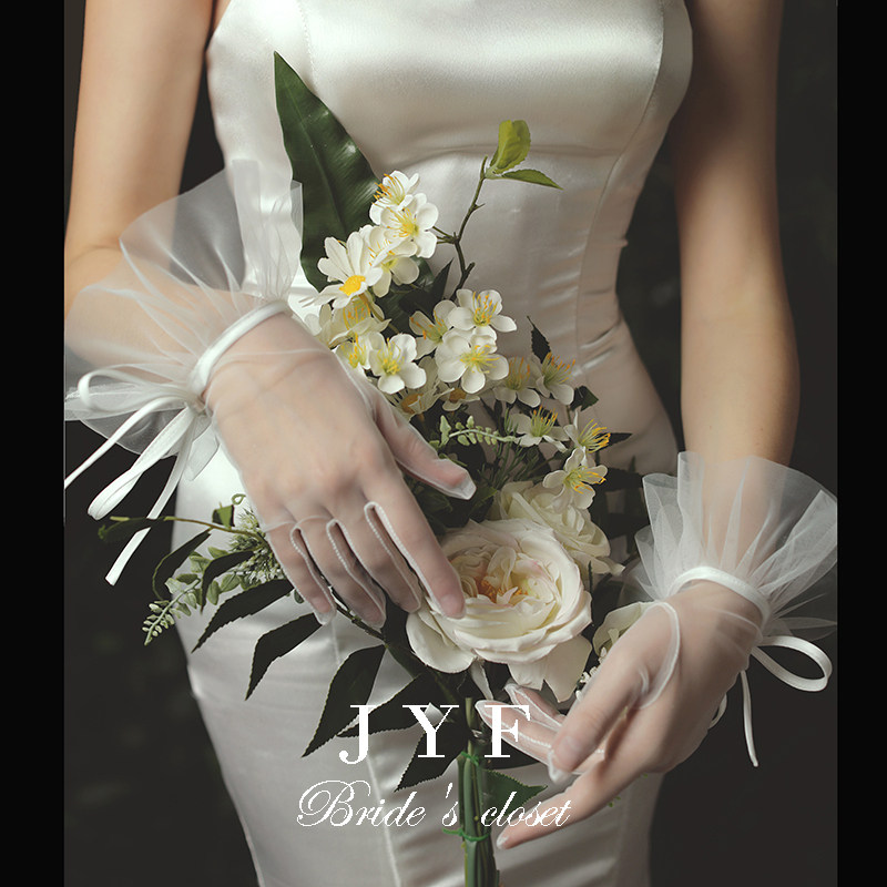 Lace bridal Korean style meritocracy Romantic White Yarn Gloves Pearl Streaming Su Wedding Wedding wedding dress Genuine Accessories