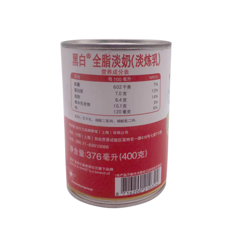 Dutch black and white light milk whole box 400g * 48 cans full fat milk condensed milk milk tea shop port type silk stockings milk tea raw material