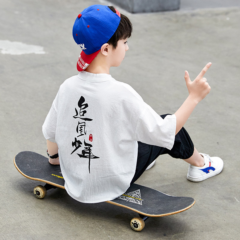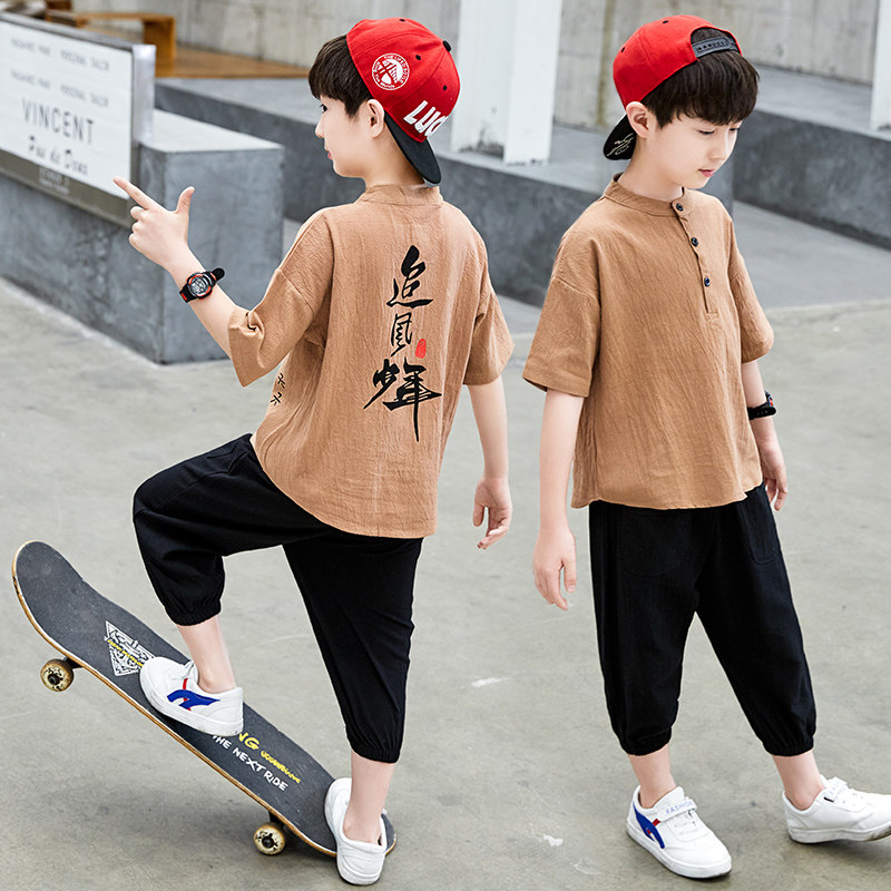 Boy's summer clothing suit 2021 New CUHK Tong Summer pure cotton net red short sleeves Two sets Children's summer Chatide-Taobao