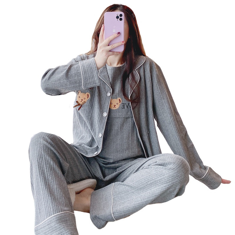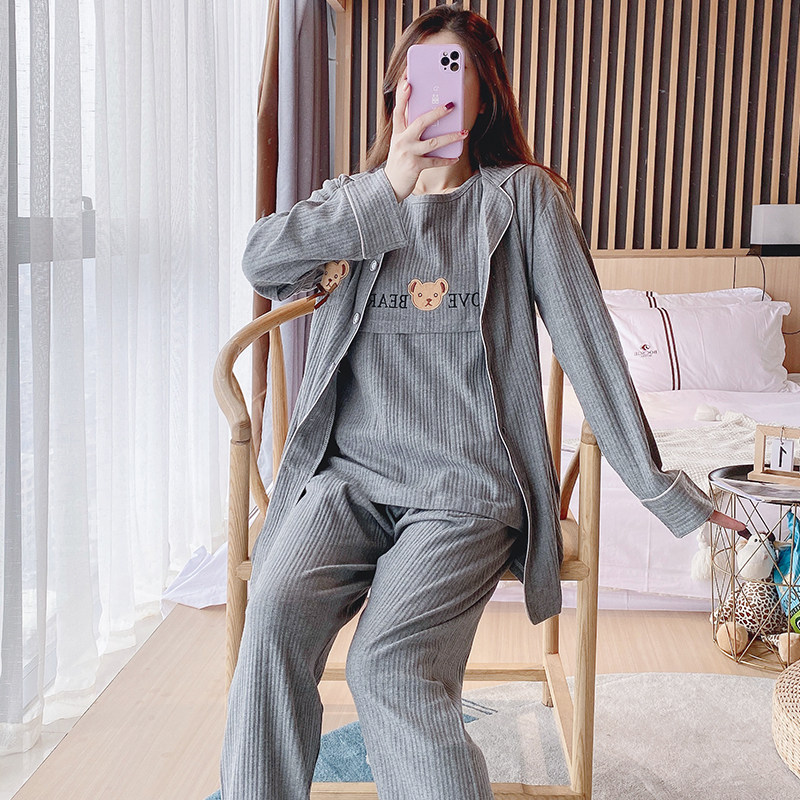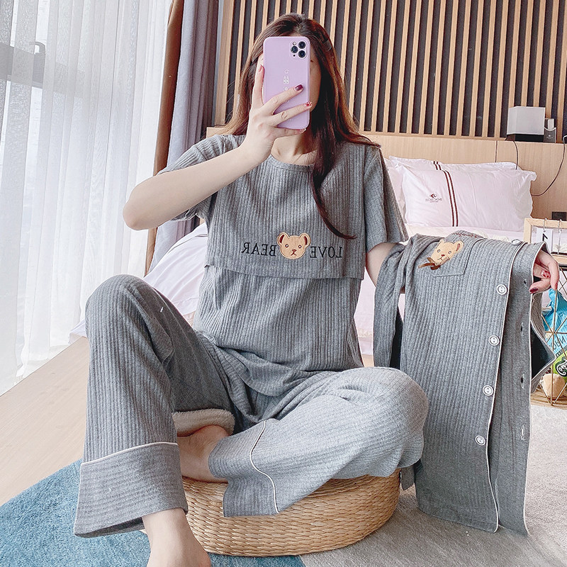 Moon Subsuit Spring Autumn and Autumn Pure Cotton Postnatal Pregnant Woman Breastfeeding Pyjamas Summer Thin three sets of maternal breast-feeding home Gun-Taobao
